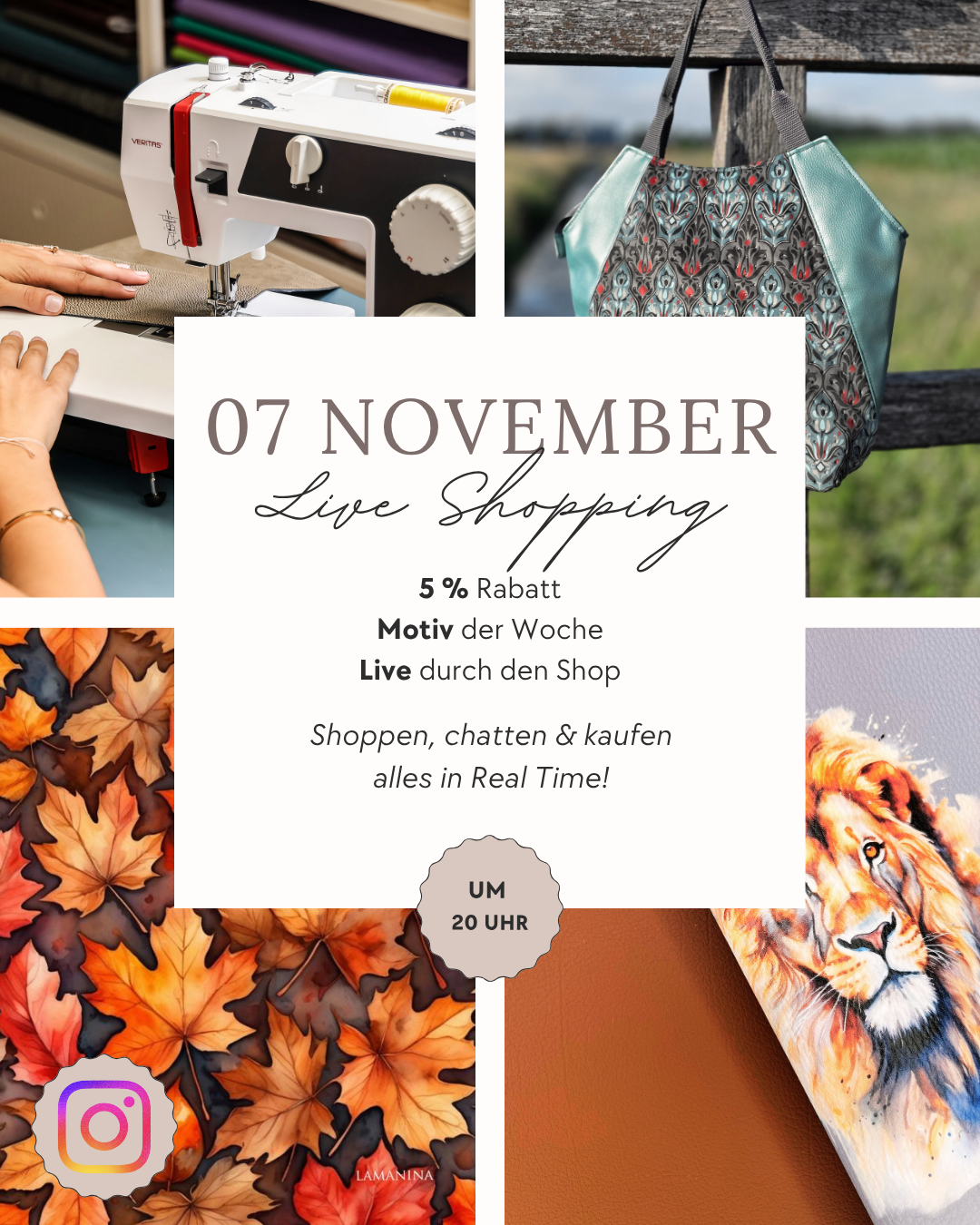 Folge uns auf Instagram und sei am Freitag um 20 Uhr Online schon bist du mitten im Shop.