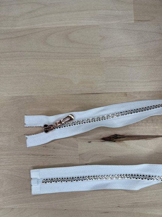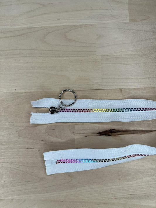 Reißverschluss 40cm Weiß Regenbogen Zähne