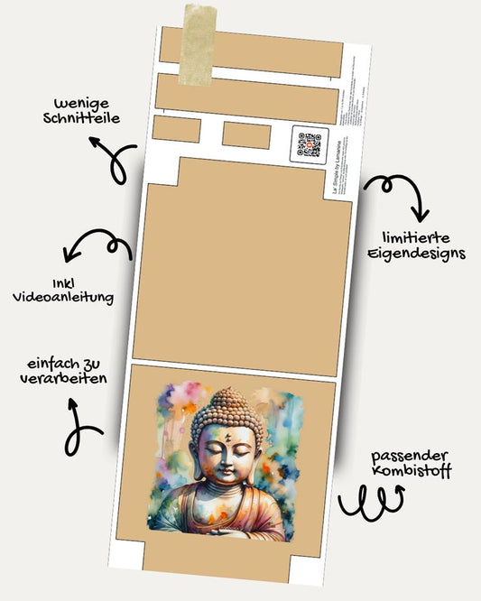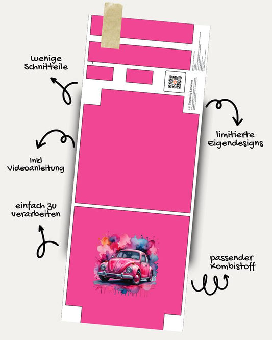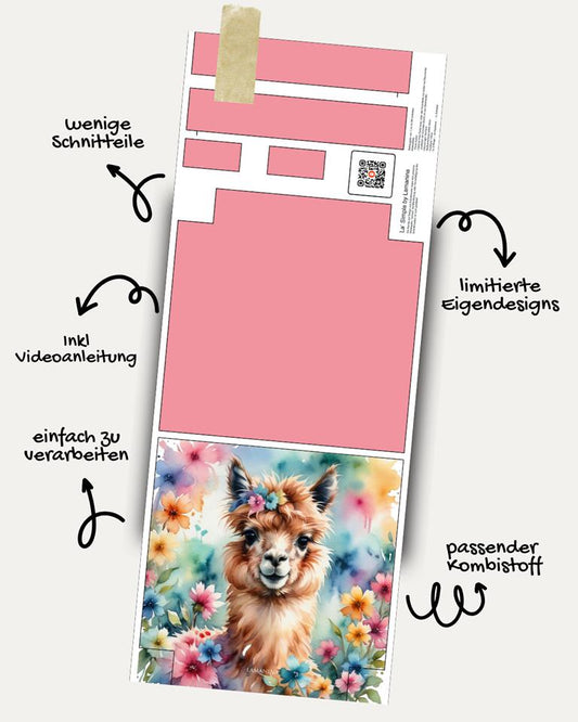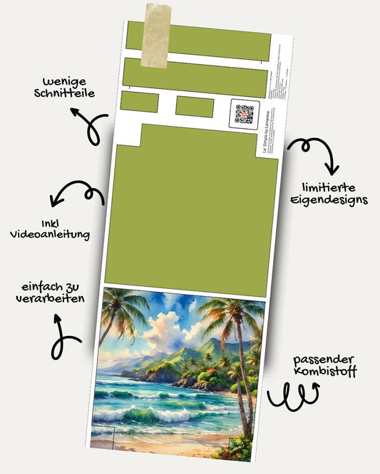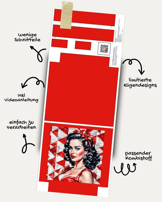 Außerdem befindet sich ein QR Code zur Nähanleitung auf YouTube, sowie eine Liste an Materialien, die du noch benötigst, um die Tasche zu nähen direkt am Panel.