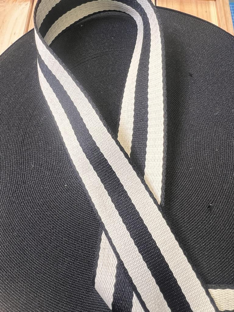 Gurtband Baumwolle Schwarz/Weiß 38mm